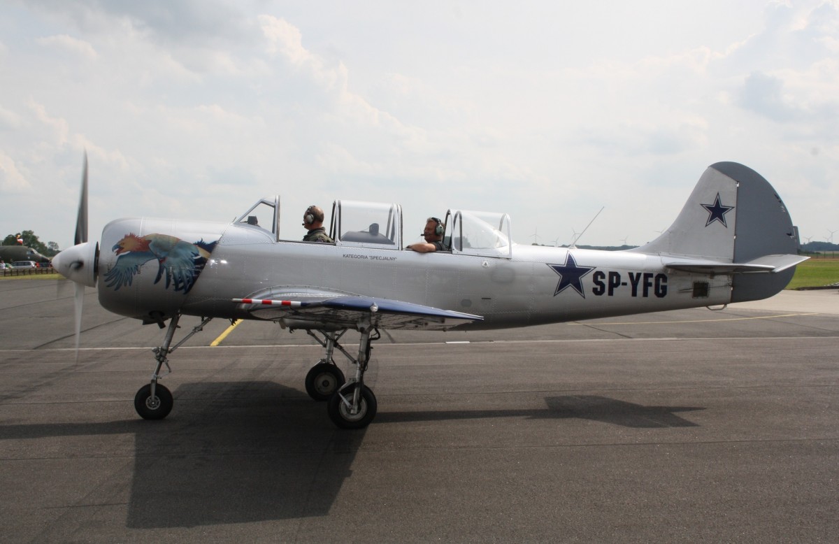 Jak-52 / Yak-52 SP-YFG des Yak-Team Wümme aus Weser / Wümme am 28.06.2014 auf dem Flugplatz Anklam / MV beim Flugplatzfest.