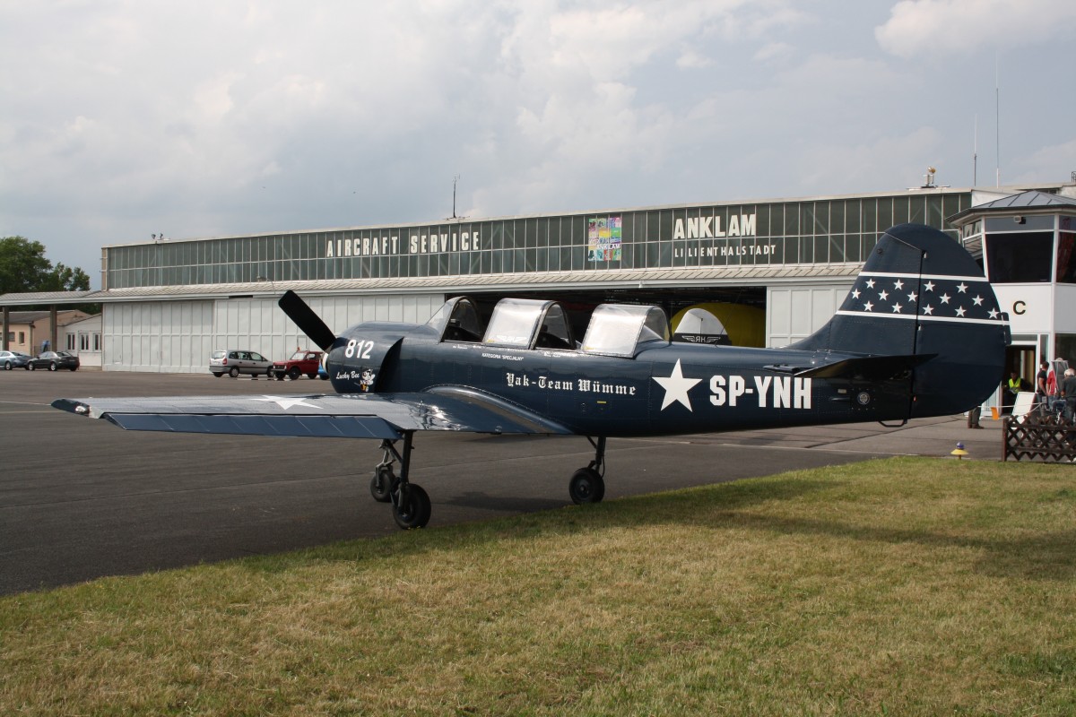 Jak-52 / Yak-52 SP-YNH des Yak-Team Wümme aus Weser / Wümme am 28.06.2014 auf dem Flugplatz Anklam / MV beim Flugplatzfest.