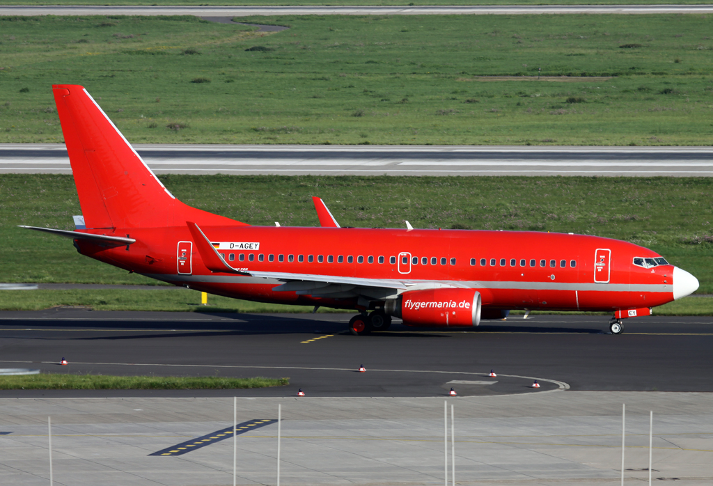 Germania B737-700 D-AGEY auf dem Taxiway zur 23L in DUS / EDDL / Düsseldorf am 20.08.2014
