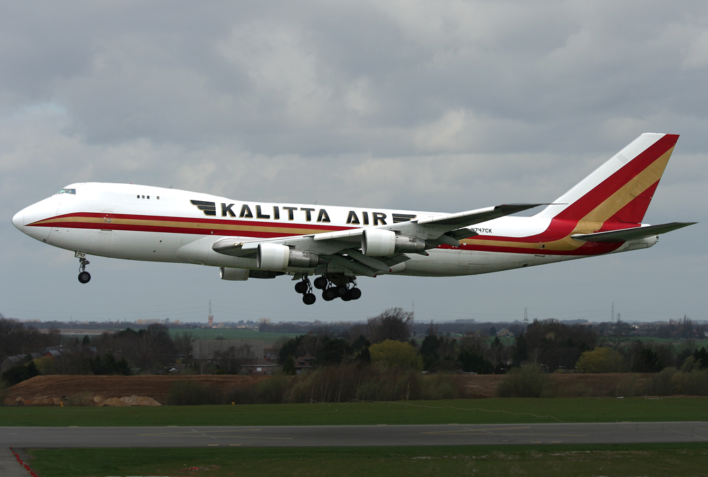 Kalitta B747-200F N747CK kurz vor der Landung auf 23 in LGG / EBLG / Liege am 31.03.2014