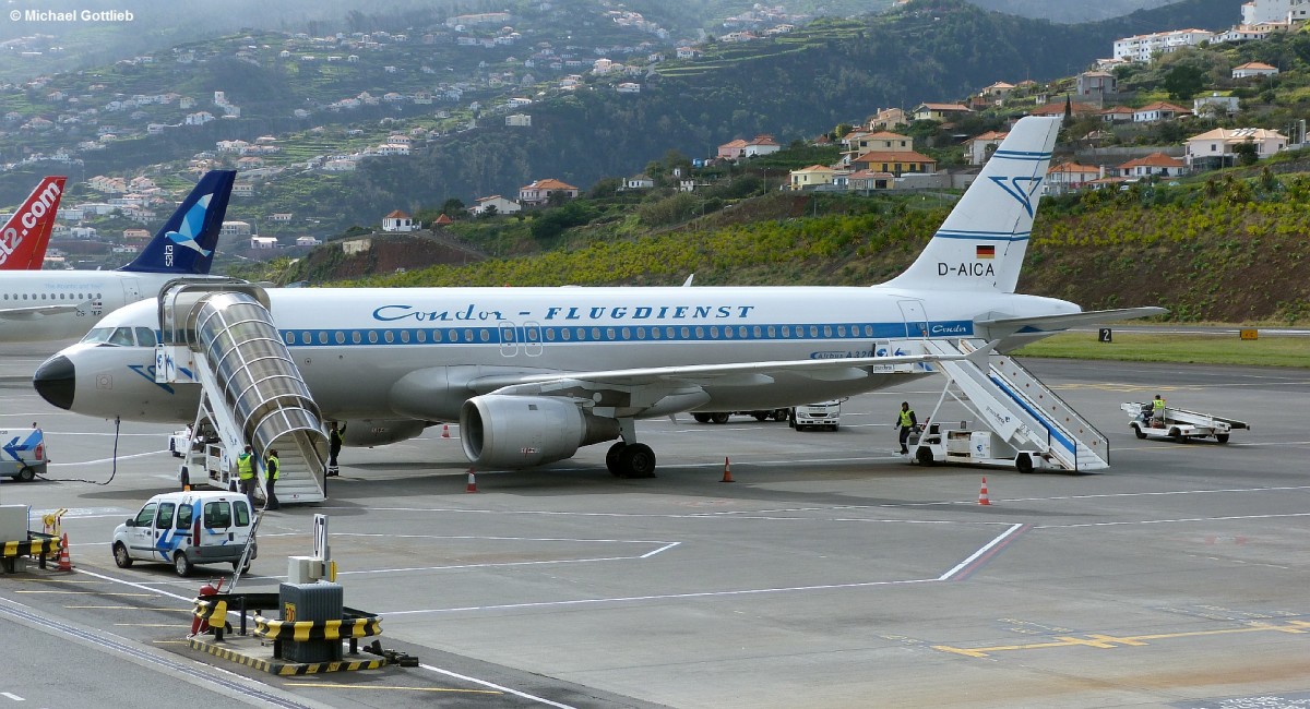 D-AICA | Airbus A 320-212 ("Condor-FLUGDIENST" im sog. Retro-Look) auf der Landebahn vom Flughafen Funchal (FNC) auf Madeira (06.03.2014) Michael Gottlieb
