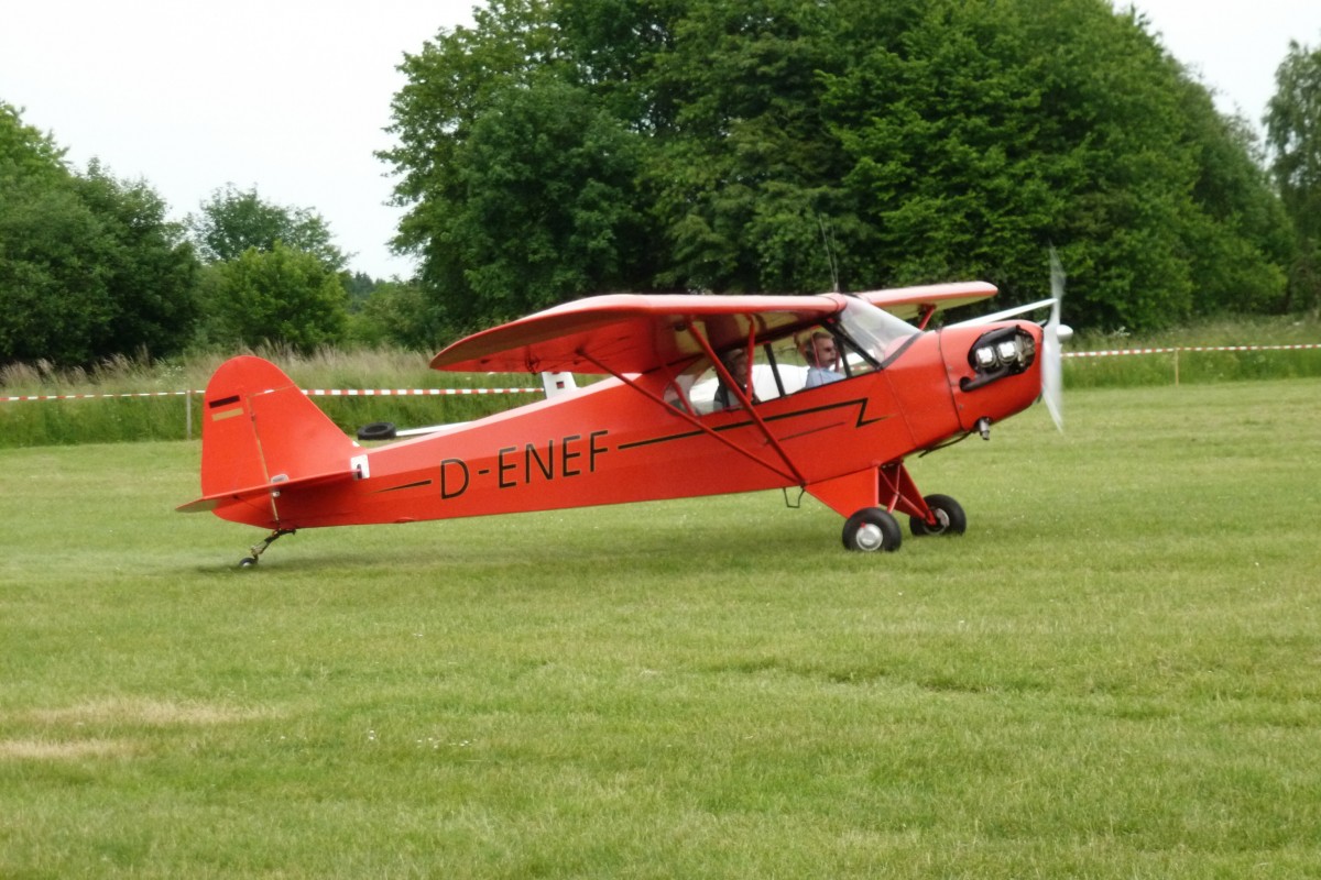 D-ENEF Piper J-3C Cub in Ailertchen (EDGA). Aufnahmedatum: 07.06.2014