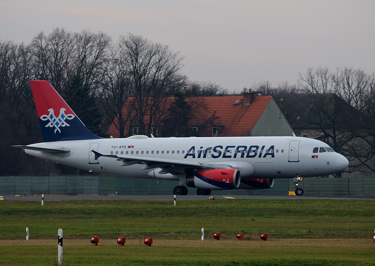 Air Serbia A 319-132 YU-APE kurz vor dem Start in Berlin-Tegel am 19.12.2015