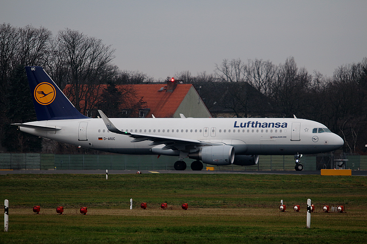 Lufthansa A 320-214 D-AIUC kurz vor dem Start in Berlin-Tegel am 19.12.2015