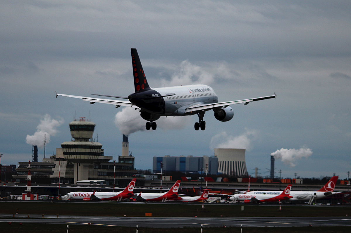 Brussels Airlines A 319-111 OO-SSE bei der Landung in Berlin-Tegel am 06.12.2015
