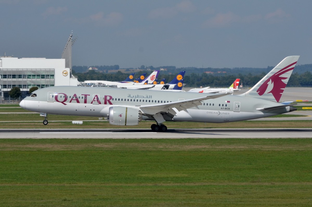 A7-BCB Qatar Airways Boeing 787-8 Dreamliner bei der Landung in München am 11.09.2015