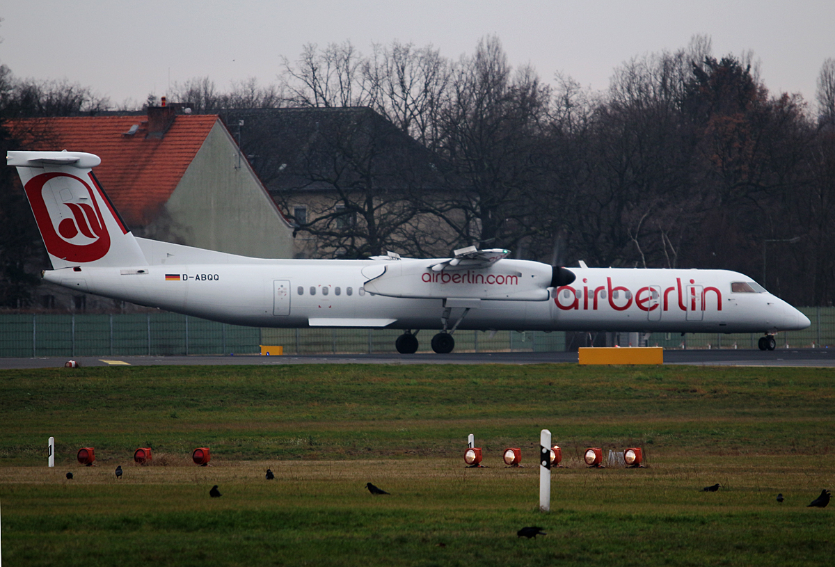 Air Berlin DHC-8-402Q D-ABQQ kurz vor dem Start in Berlin-Tegel am 19.12.2015