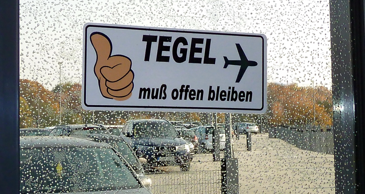 Daumen hoch! Foto:An einer Tür zu einem Parkdeck am Flughafen Berlin-Tegel, 28.10.2015