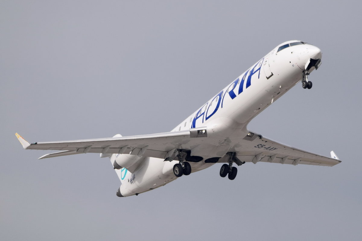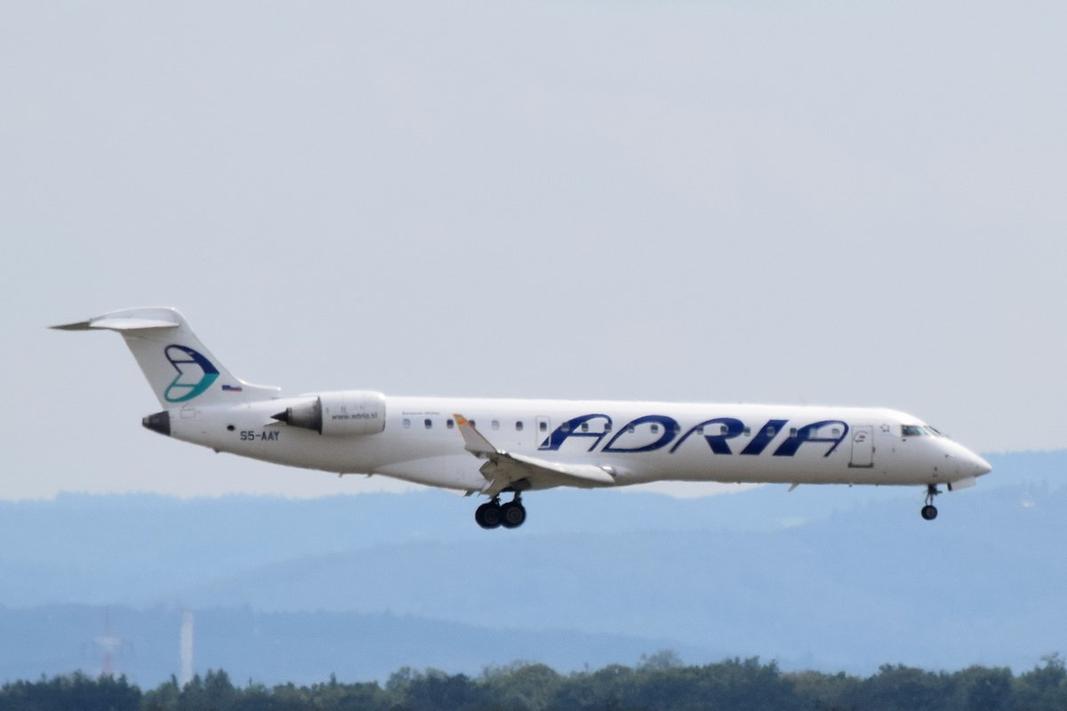 S5-AAY Adria Airways Canadair CL-600-2C10 Regional Jet CRJ-701ER  beim Anflug in Frankfurt am 01.08.2016