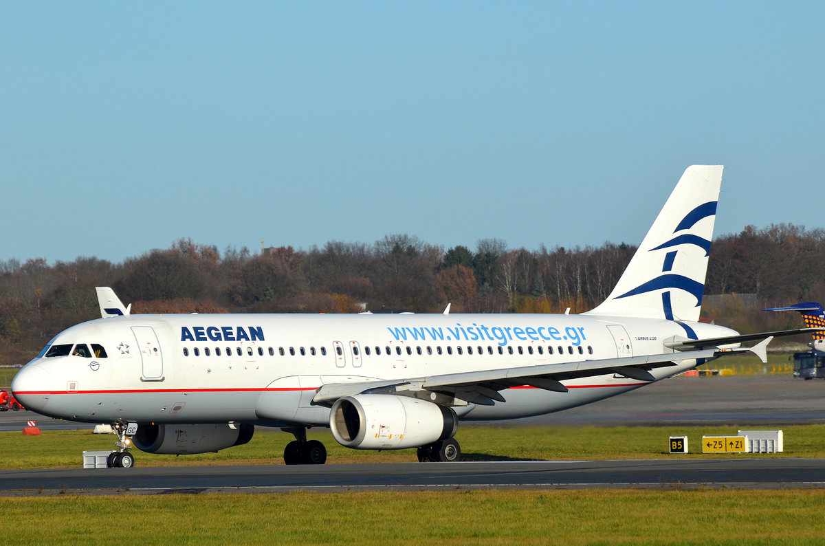 Aegean Airbus A320 SX-DGC beim rollen zum Start am Flughafen Hamburg Fuhlsbüttel Helmut Schmidt aufgenommen am 27.11.16