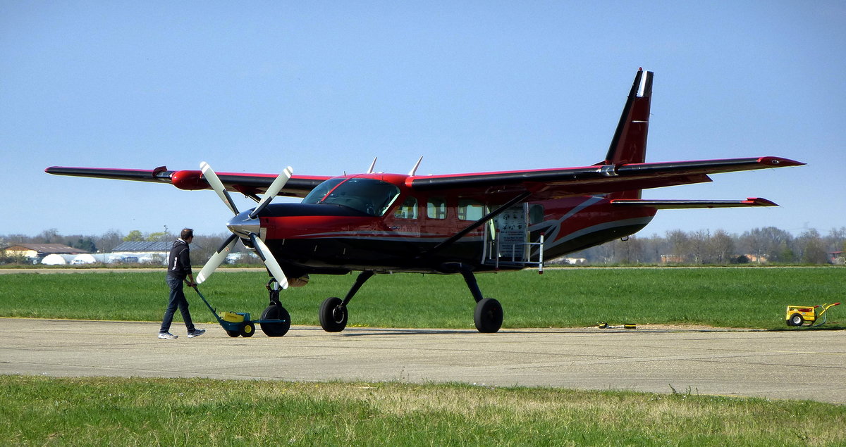 Cessna 208 (N208DA), auf dem Weg zur Tankstelle, Flugplatz Bremgarten, April 2016