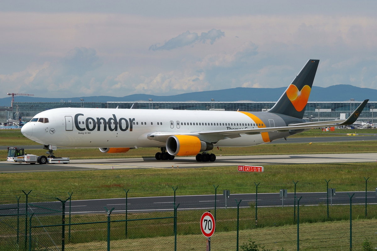Condor, D-ABUO, Boeing, 767-3Q8 ER wl, ~ neue TC-Lkrg., FRA-EDDF, Frankfurt, 08.09.2018, Germany