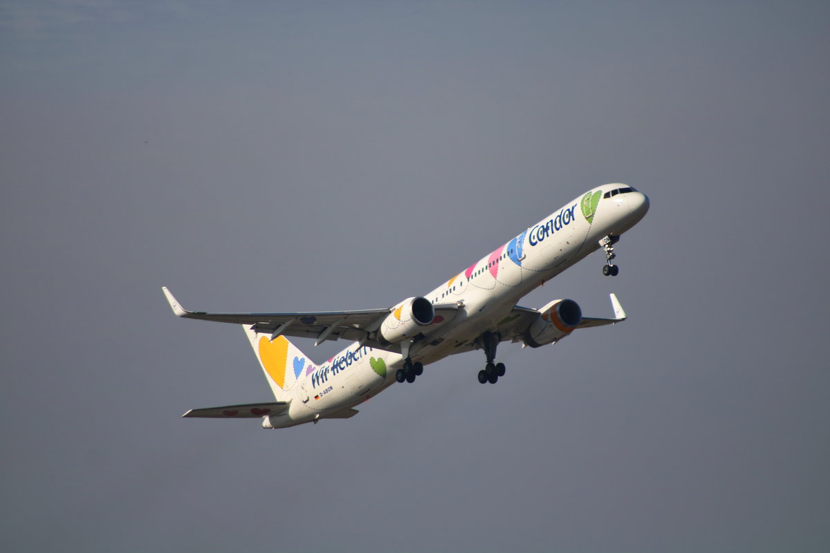 B757-300 D-ABON "Wir lieben Fliegen" der Condor beim abheben in Düsseldorf am 20.10.18