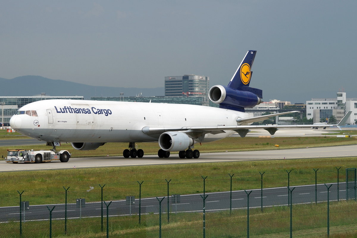 Lufthansa Cargo McDonnell Douglas MD11F D-ALCA wird zur Parkposition geschleppt in Frankfurt 14.9.2018