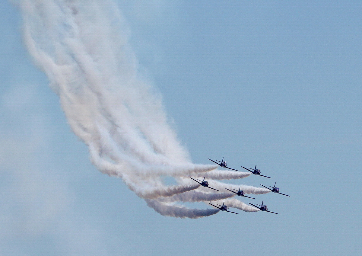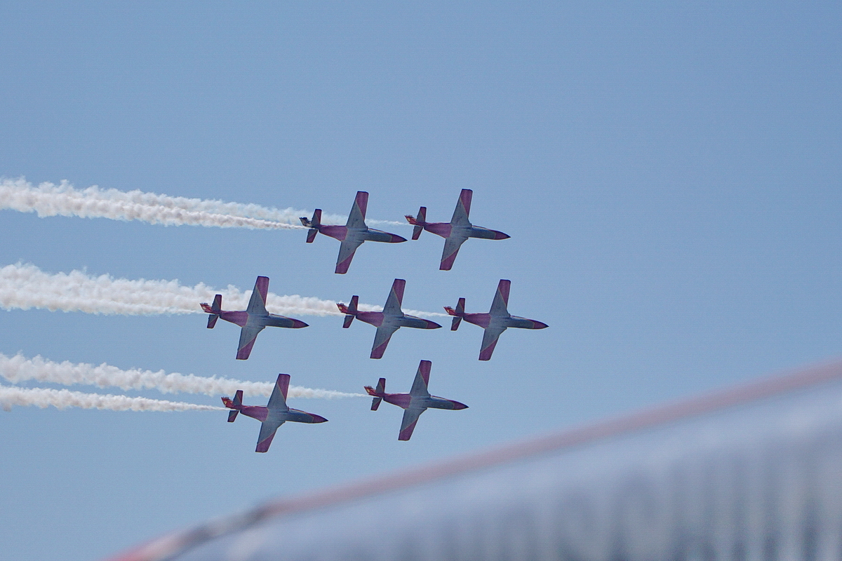 Kunstflugstaffel Patrulla Aguila aus Spanien. Flugzeugtyp: CASA C 101 Aviojet. Foto: ILA 2018