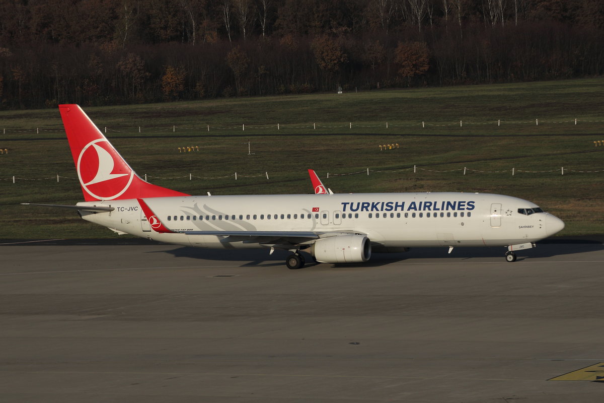 Turkish Airlines, Boeing 737-8F2(WL), TC-JVC, 'Sahinbey'. Köln-Bonn (EDDK) am 24.11.2019.