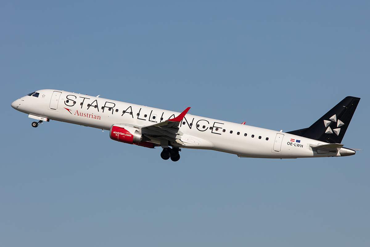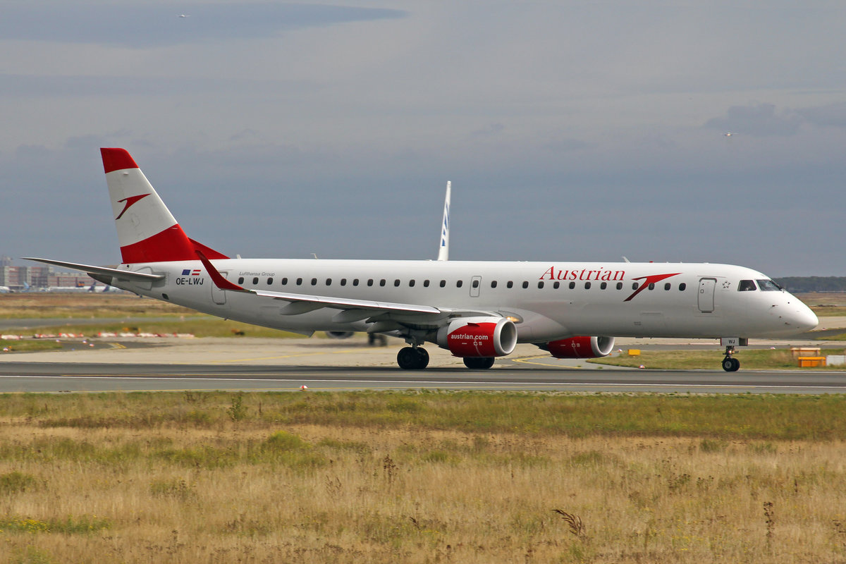 Austrian Airlines, OE-LWJ, Embraer ERJ-195LR, msn: 19000507, 29.September 2019, FRA Frankfurt, Germany.