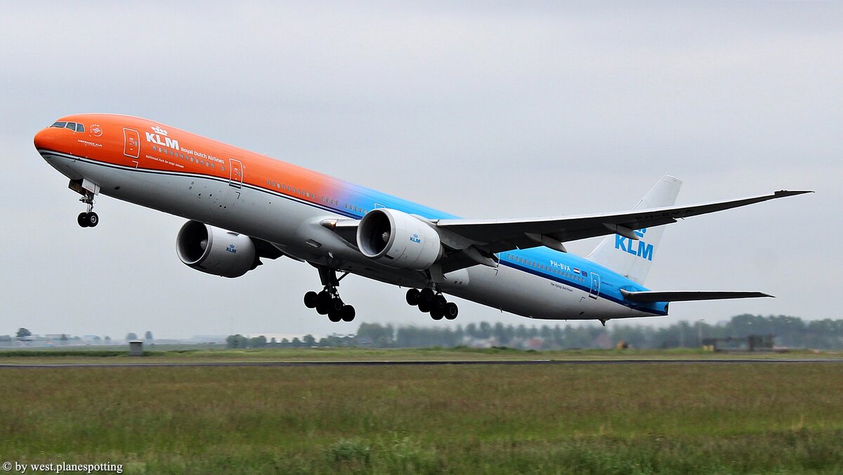 KLM Royal Dutch Airlines Boeing 777-300ER PH-BVA  The Orange Pride  special livery @ Amsterdam Airport Schiphol / AMS.