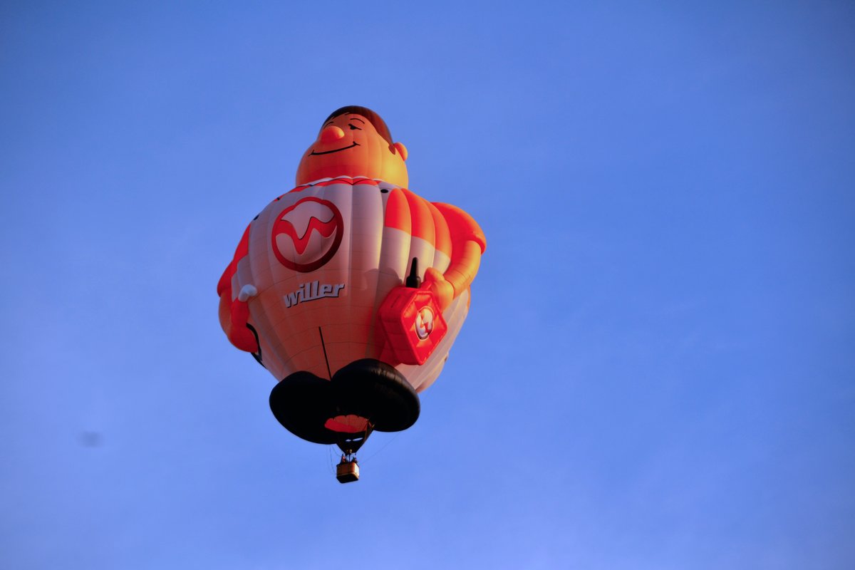 Der Dicke Anton - 29,3 Meter hoch - Gesamtvolumen 4000m³ - Beim Abheben steigen 1,2 Tonnen Gewicht - Nur der Kanister an der Seite würden 55.000 Liter Benzin aufnehmen - allein die Hose verbrauchte 500m³ Stoff - Günther Klünder