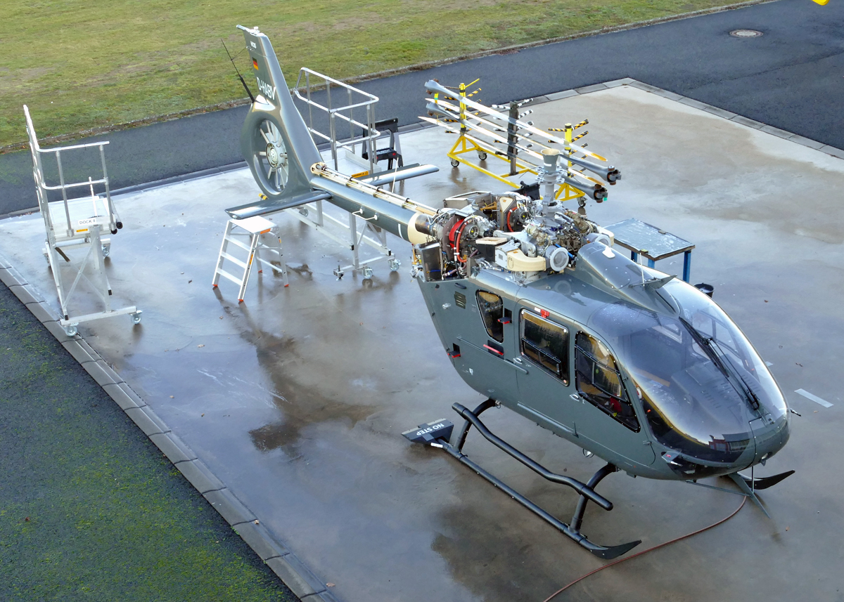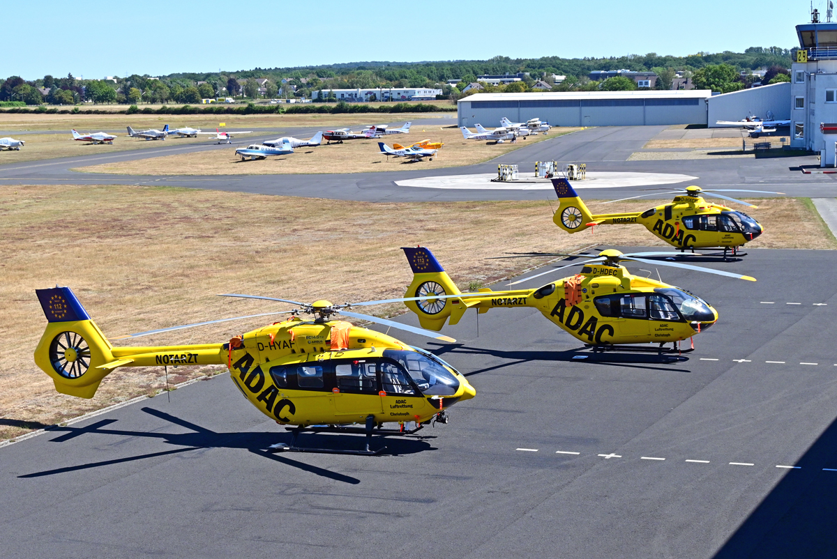 Vor der ADAC-Werft in Bonn-Hangelar, BK 117 D-HAID der DRF (Christoph Europa 5) und eingerüstet eine H-135, PH-TTR der Ambulance NL - 14.10.2019 Rolf Reinhardt