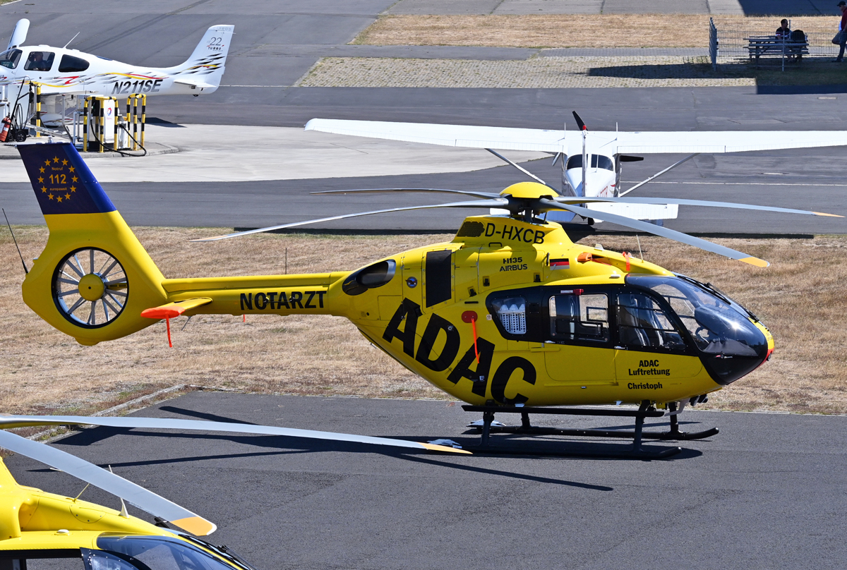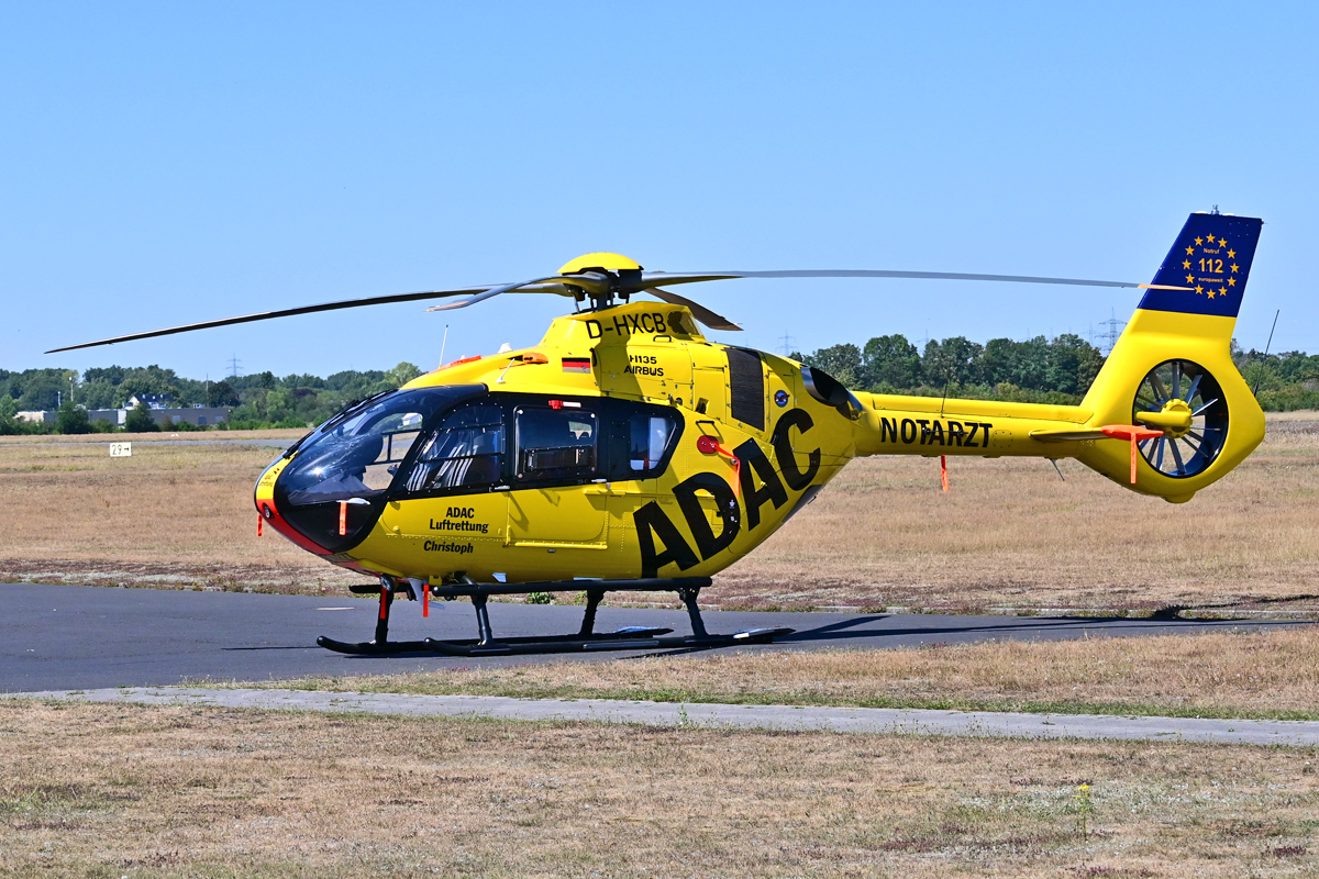 Nun Frontal: Airbus Helicopters H135 P3 der ADAC Luftrettung GmbH (Standort LRZ Siegen, Klinikum Jung-Stilling) "Christop 25", D-HXBB, in Herdorf am 02.08.2020. Armin Schwarz