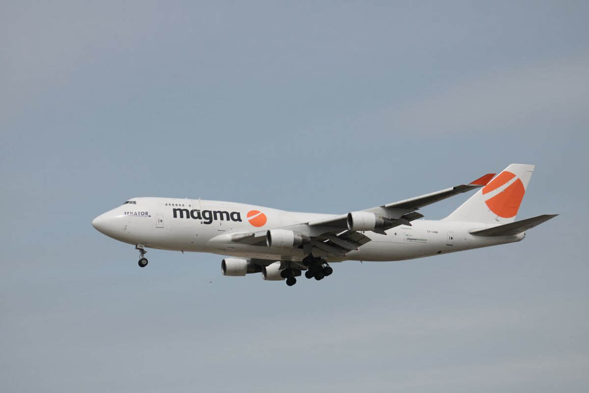 Magma Boeing 747 TF-AMI am 08.05.21 in Frankfurt am Main Flughafen beim Landeanflug von einen Fotopunkt aus fotografiert