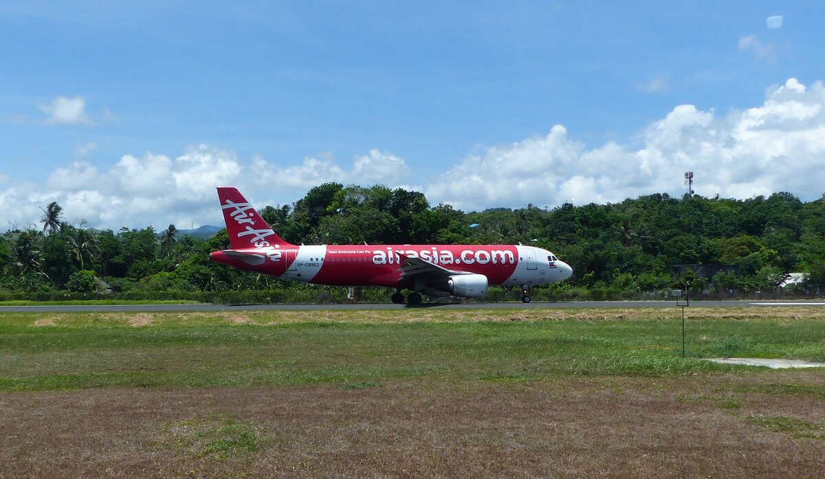 Air Asia beim Landeanflug auf Phuket am 30.12.2011.