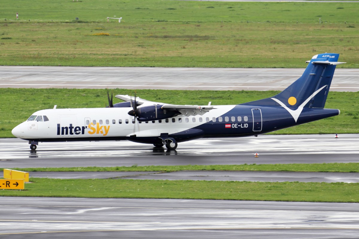 InterSky OE-LID rollt nach der Landung zur Parkposition in Düsseldorf 5.9.2015