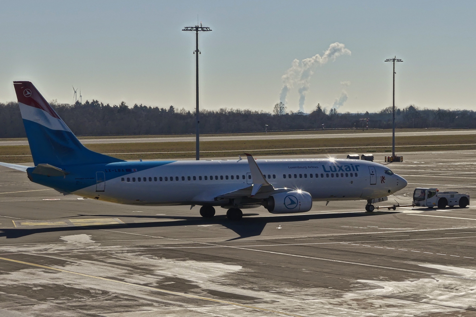 LX-LBR Boeing 737-7K2, wird in Kürze von einem Schropf Schlepper auf dem Flughafen von Luxemburg aufs Rollfeld geschoben. 16.06.2025