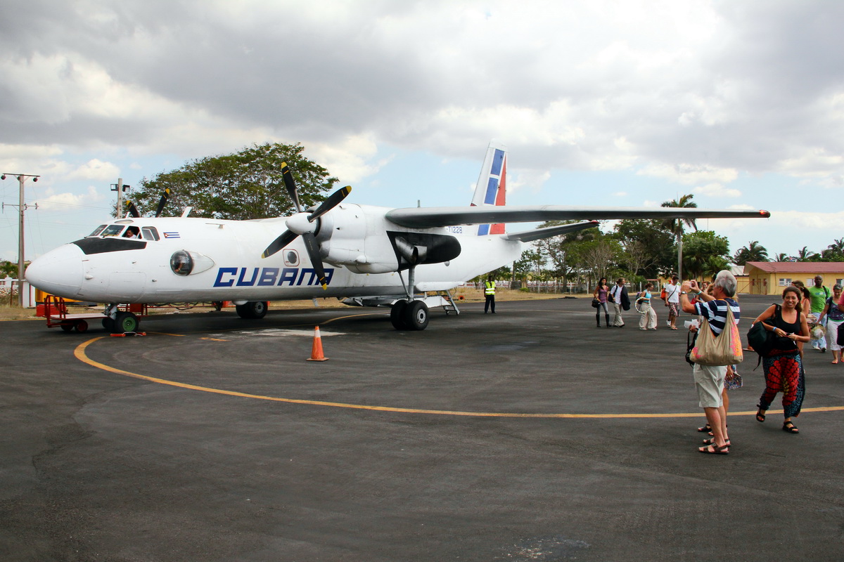 25. April 2011, Antonov AN 26 TI 228 der staatliche Fluggesellschaft Cubana mit Sitz in Havanna auf dem Fughafen Playa Baracoa (UPB) bei Havanna.