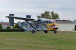 Short SC-7 Skyvan 3M-400, OE-FDV beim Start auf der Piste 06 in Gera zum absetzen von 24 Fallschirmspringern am 26.8.2023