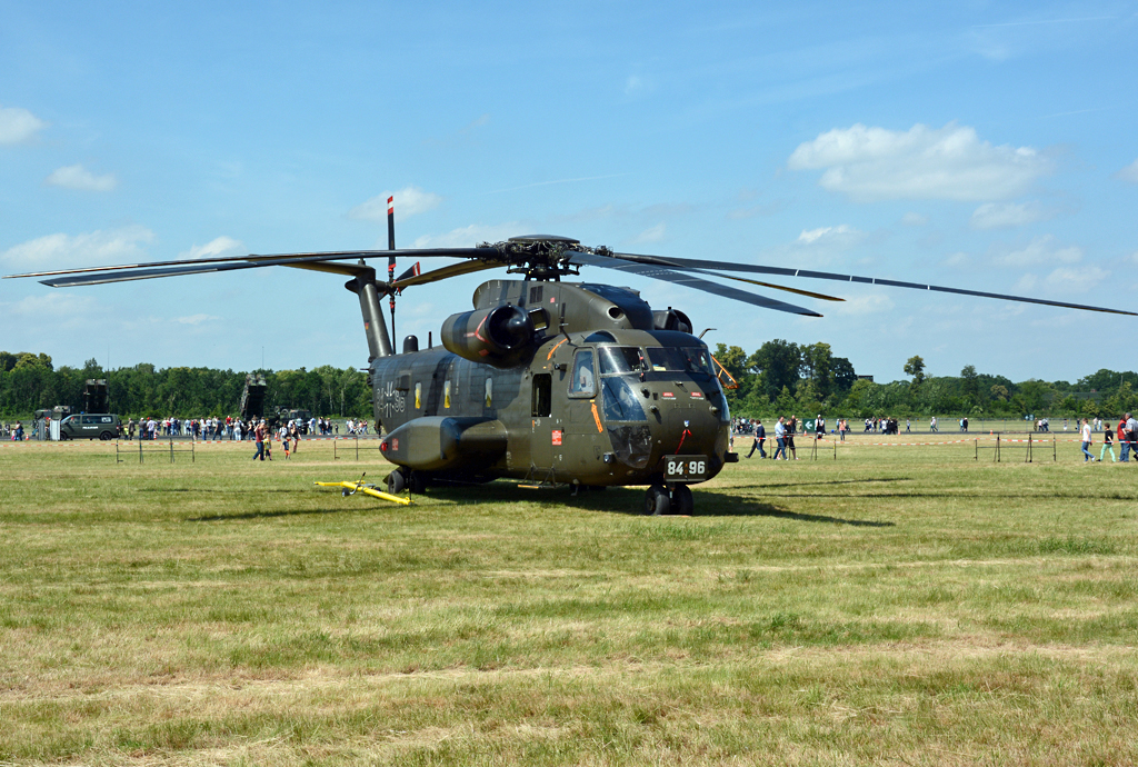 CH-53 GS, 84+96 mit 2 x 4.330 PS und maximales Abfluggewicht von 19.050 kg. Die CH-53G wurden früher von den Heeresfliegern betrieben und sind seit kurzer Zeit in die Luftwaffe eingegliedert worden. Nörvenich 13.06.2015