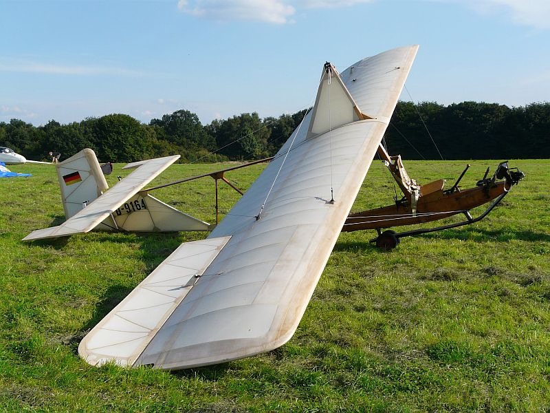 Dieser schöne Schulgleiter zeigt deutlich, wie man früher geflogen ist. Das Bild stammt vom 16.08.2008 und ist auf dem Segelfluggelände Wolfsaap bei Düsseldorf entstanden.