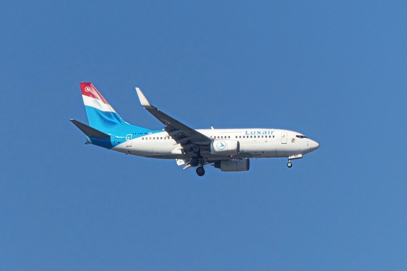 Luxair, LX-LBR Boeing 737-7K2, nahe der Stadt Luxemburg im Landeanflug. 04.03.2026