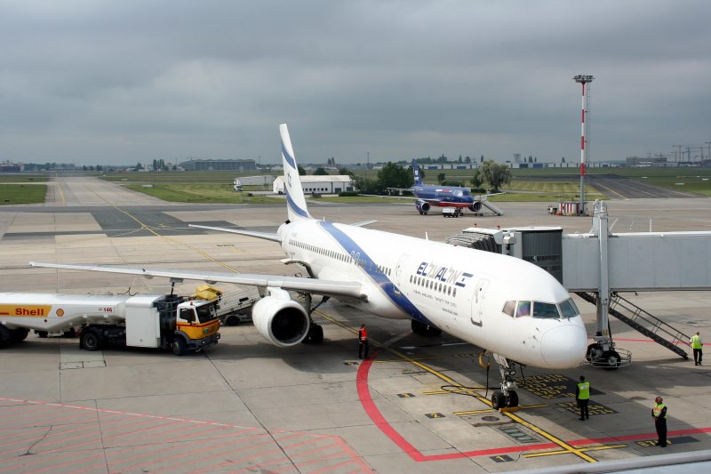 EL AL B 757-258(ER) 4X-EBU am Gate des Flughafen Berlin-Schönefeld am 31.05.2009