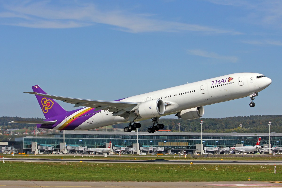 Thai Airways, HS-TKQ, Boeing B777-3ALER, 29.September 2015, ZRH Zürich, Switzerland.