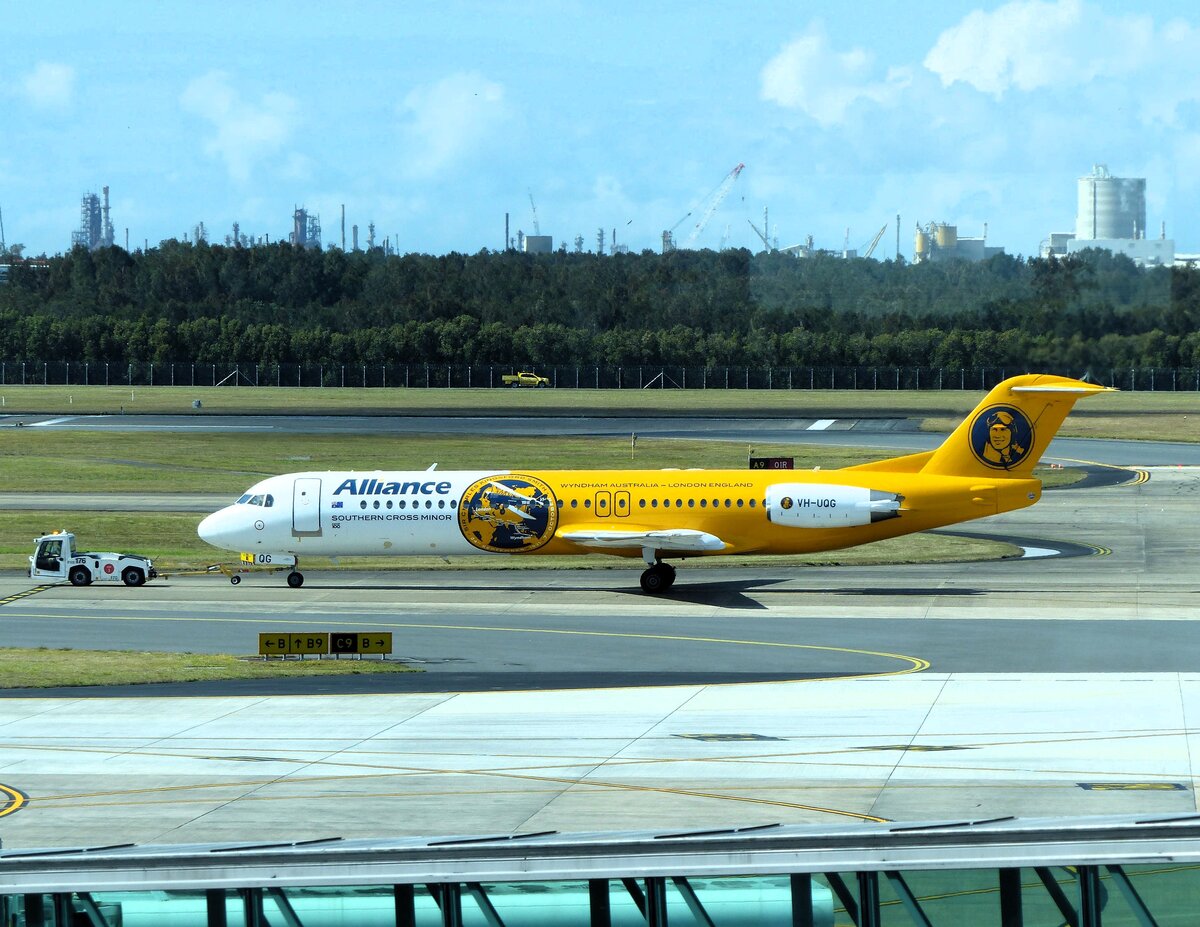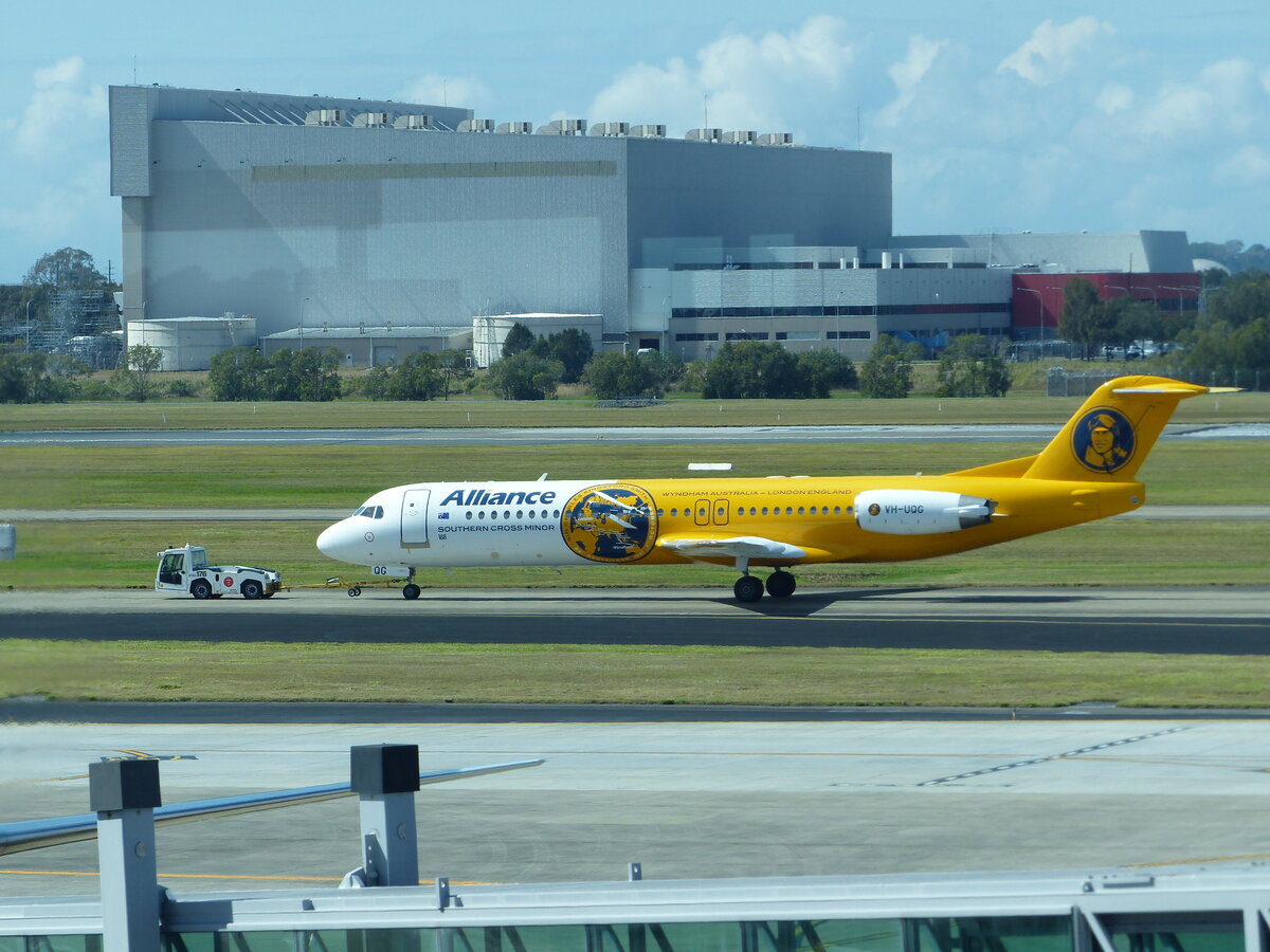 Alliance Airlines, Fokker 100, VH-UQG, Brisbane Int. Airport (BNE/YBBN), 22.8.2025