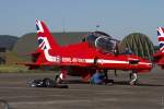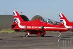 BAe Hawk T.1, XX226, von der No. 4 Flying Training School (4FTS) RAF Valley, Anglesey, UK. Emblem auf Heckflosse zeigt Pyramide und Palme und weist auf die Gründung der 4FTS am 01.04.1921 in Abu Sueir, Ägypten, hin. Bild aufgenommen im Juni 1983 beim 30jährigen Jubiläum der Canadian Air Force Base Baden-Söllingen.