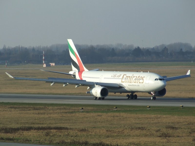Ein Airbus A 330-200 der Emirates nach der Landung in Düsseldorf am 27.12.2008.