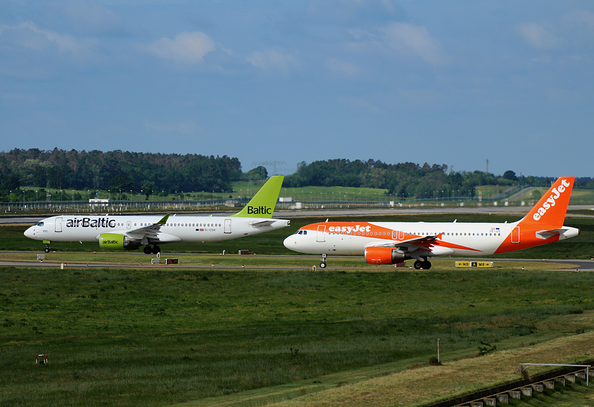 Air Baltic, Airbus A 220-300, YL-CSH, Easyjet Europe, Airbus A 320-214, OE-IZE, BER, 21.05.2022