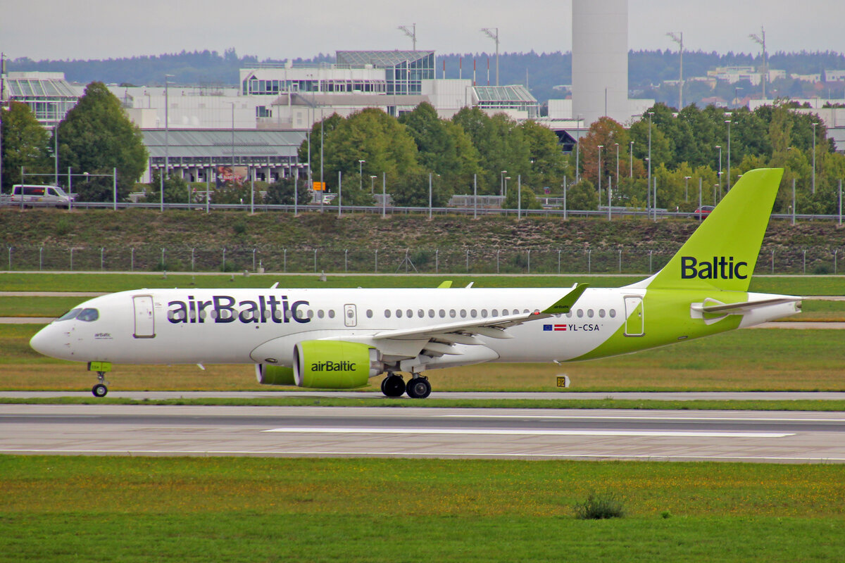 Air Baltic, YL-CSA, Bombardier CS-300, msn: 55003, 11.September 2022, MUC München, Germany.