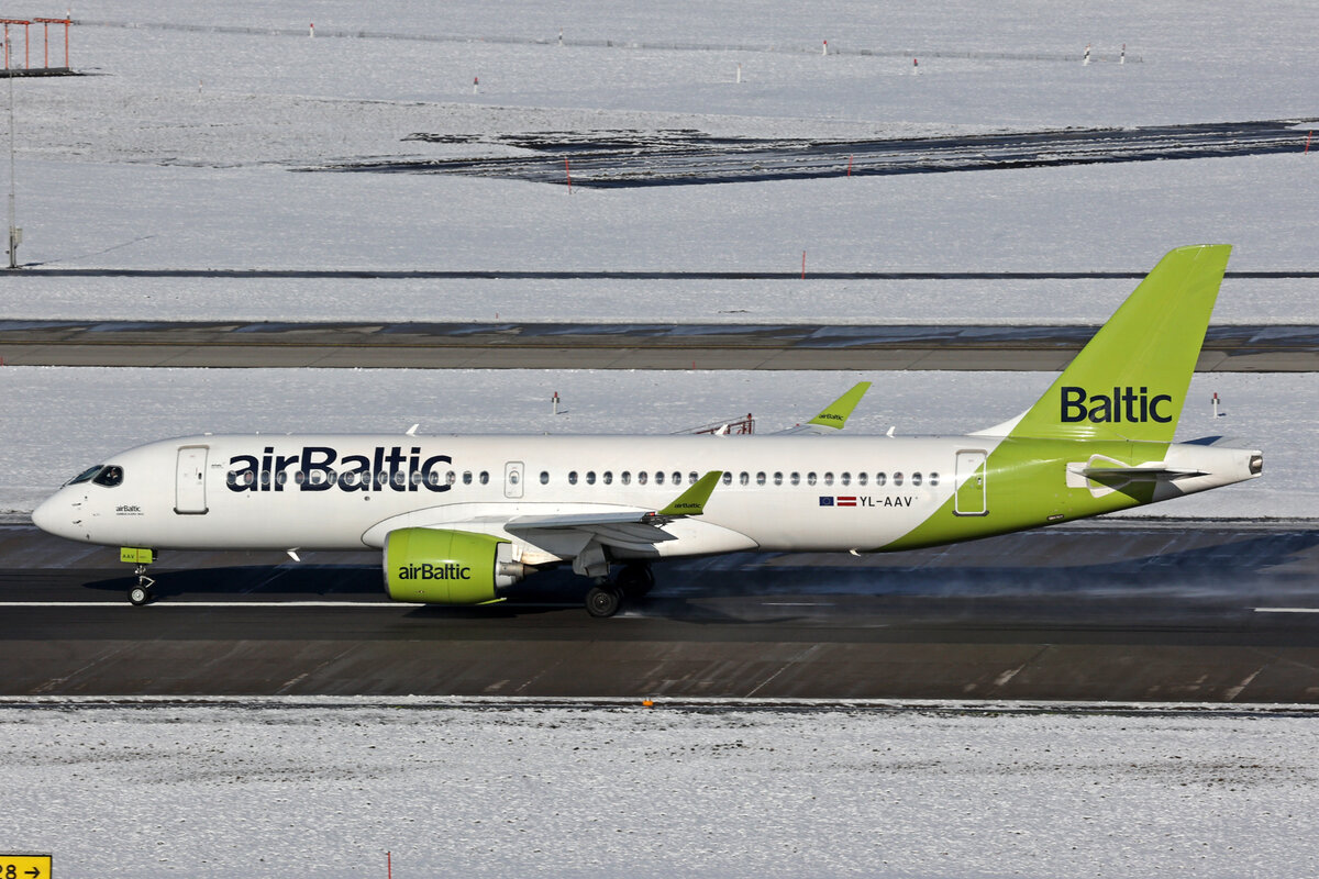 Air Baltic, YL-AAV, Airbus A220-371, msn: 55071, 19.Januar 2024, ZRH Zürich, Switzerland.