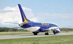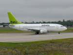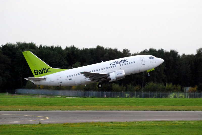 Eine Boeing 737 Kennung YL-BBE der Air Baltic beim Start in Hamburg Fuhlsbüttel am 24.08.08