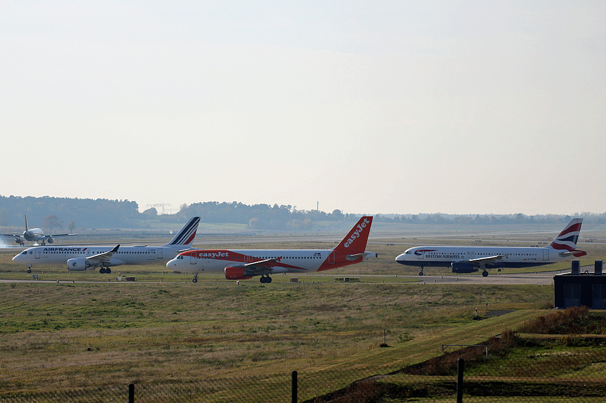 Air France, Airbus A 220-300, F-HZUA, Easyjet Europe, Airbus A 320-214, OE-IZE, British airways, airbus A 320-232, G-TTOB, BER, 31.10.2021