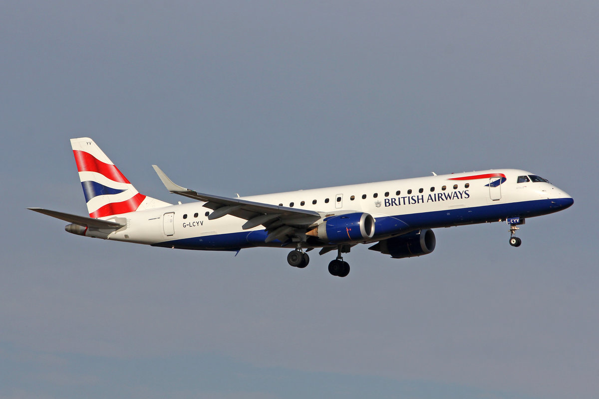 BA CityFlyer, G-LCYV, Embraer Emb-190LR, msn: 19000255, 21.Februar 2019, ZRH Zürich, Switzerland.
