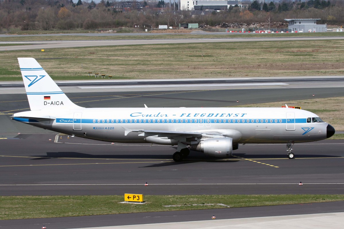 Condor, D-AICA "Hans", Airbus, A 320-212 (Retro-Lkrg.), 03.04.2015, DUS-EDDL, Düsseldorf, Germany