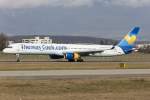 Condor Boeing 757-300 D-ABOF (Hannover Airport Sticker) im Landeanflug auf Hamburg Fuhlsbüttel am 02.04.16