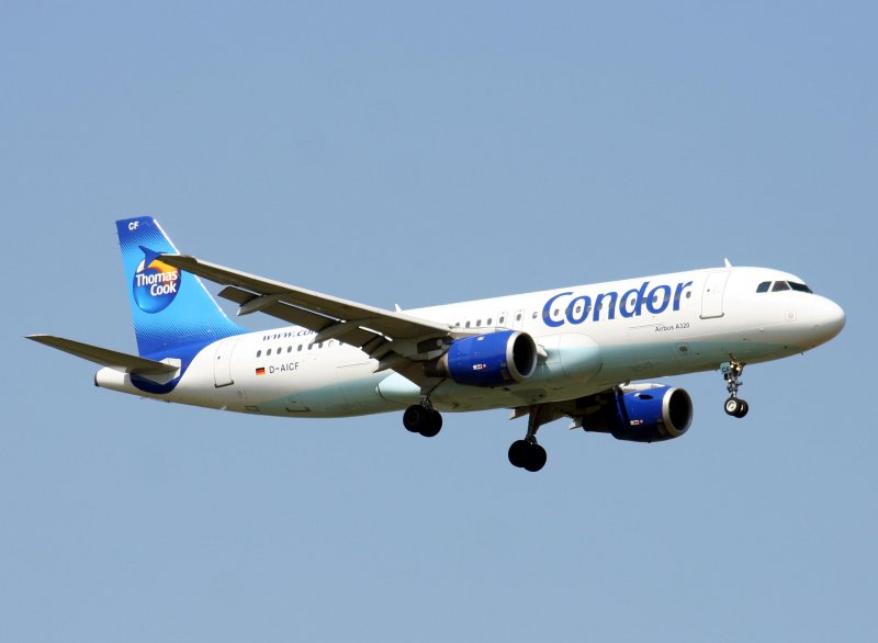 Condor A 320-212 D-AICF im Landeanflug auf den Flughafen Berlin-Schönefeld am 01.05.2009