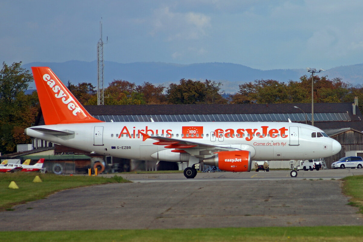 easyJet, G-EZBR, Airbus A319-111, msn: 3088,  100  Airbus, 19.Oktober 2007, BSL Basel-Mühlhausen, Switzerland.