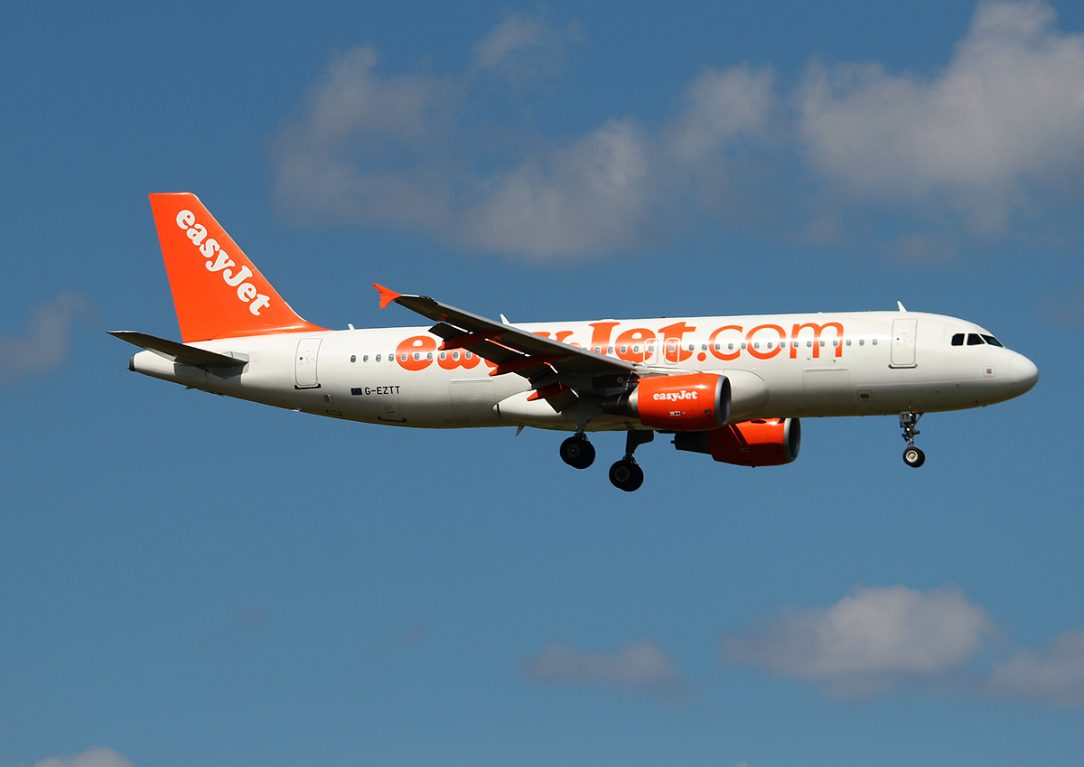 Easyjet A 320-214 G-EZTT bei der Landung in Berlin-Schönefeld am 25.08..2013